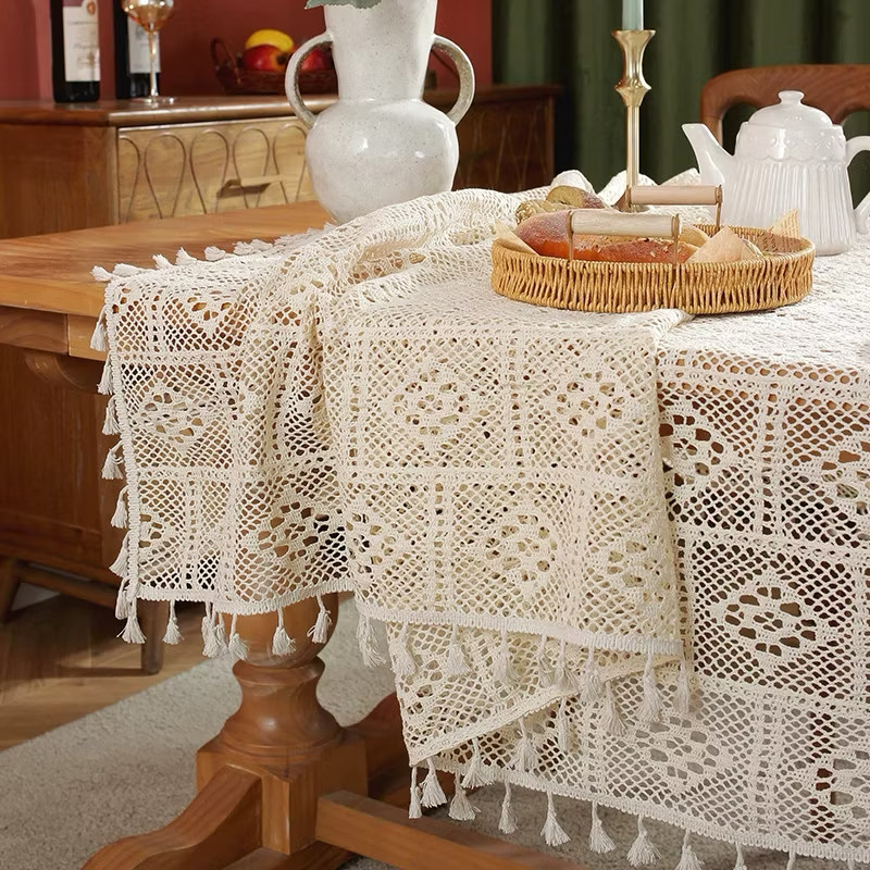 ผ้าปูโต๊ะลูกไม้ฝรั่งเศสวินเทจคุณภาพสูง ป้องกันฝุ่น เหมาะสำหรับตกแต่งบ้าน ร้านอาหาร และคาเฟ่