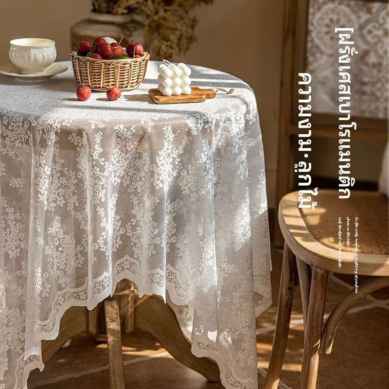 ผ้าปูโต๊ะวินเทจ ลูกไม้ ลายดอกซากุระ สี่เหลี่ยม ตกแต่งโต๊ะกาแฟและบ้าน140*140/140*180cm