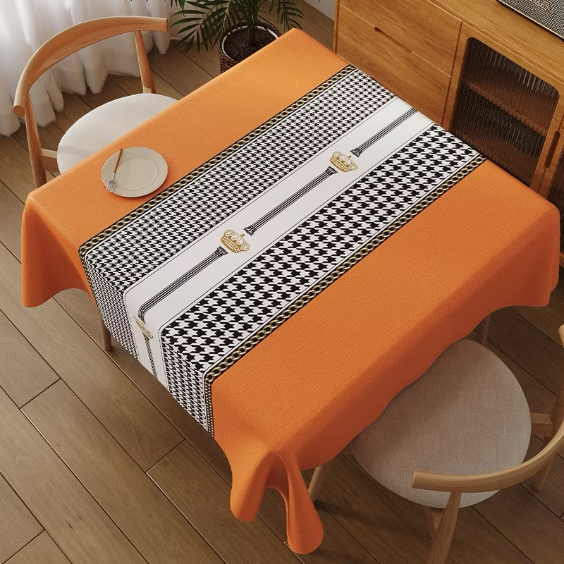 ผ้าปูโต๊ะอาหารสีส้มลายลูกฟูกวินเทจยุโรปดั้งเดิม สำหรับห้องอาหาร กันน้ำป้องกันคราบ ง่ายสะอาด