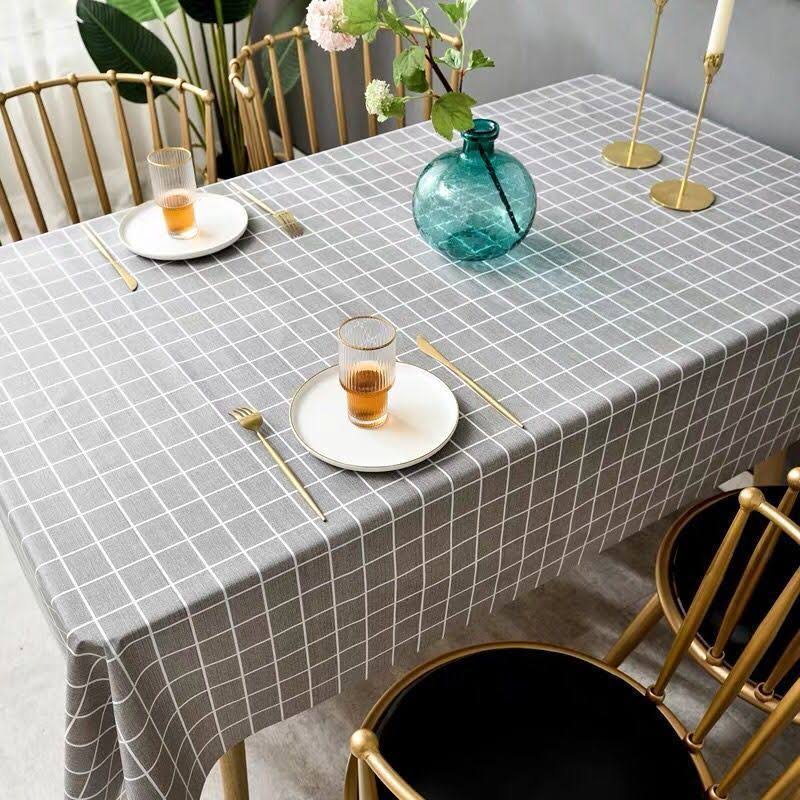 ผ้าปูโต๊ะ ผ้าสําหรับโต๊ะอาหาร ผ้าคลุมโต๊ะ กันน้ํา ทําความสะอาดง่าย สีเทา ขนาด 137คูณ 90
