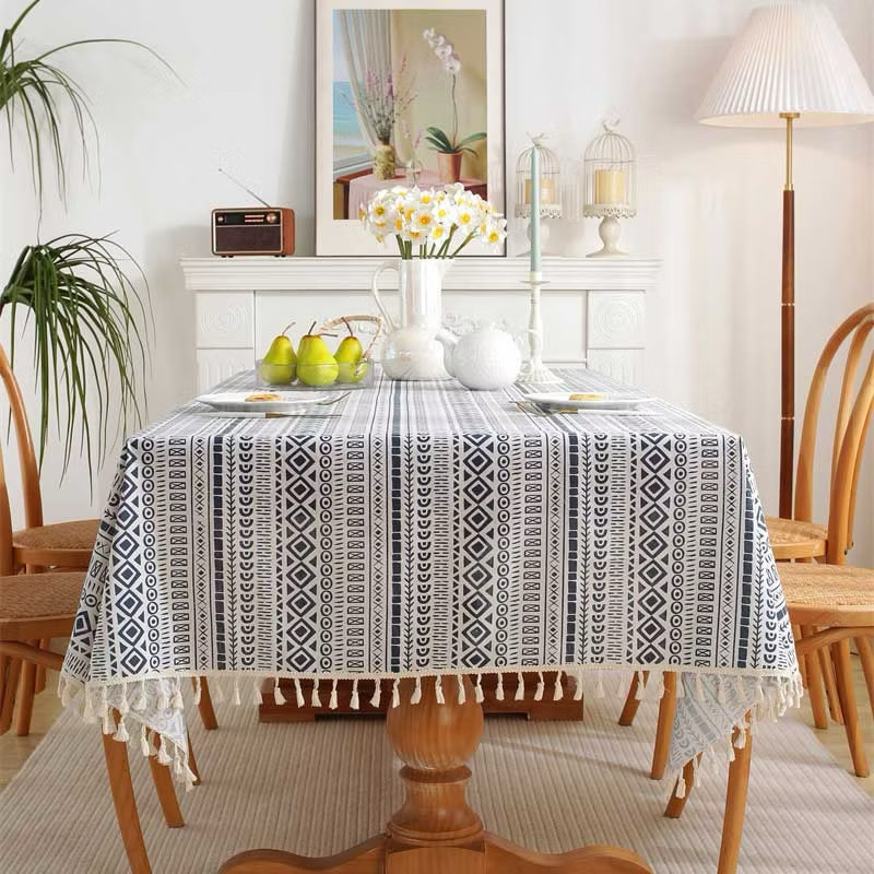 ผ้าปูโต๊ะ ลินินพิมพ์ลายสไตล์ญี่ปุ่น สำหรับคลุมโต๊ะกลมโต๊ะเหลี่ยม ตกแต่งบ้าน สีน้ำเงิน