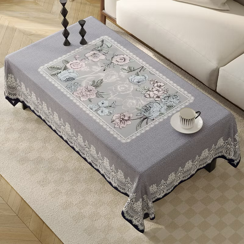 ผ้าปูโต๊ะ PVC วัสดุผ้าใยสังเคราะห์ ทรงสี่เหลี่ยมผืนผ้า 90×150 ซม. กันน้ำ กันน้ำมัน ทนความร้อน ใช้ในบ้าน โรงแรม สีเทา